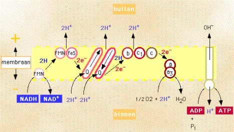 ene op het andere complex vindt plaats met behulp van de stoffen ubichinon en
